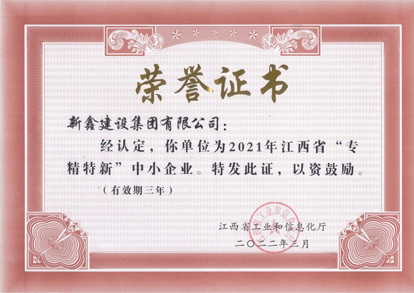 榮獲江西省“專精特新”中小企業(yè)...
